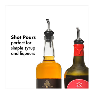 The Single-Wall Cocktail Shaker features two tight silicone gaskets to help prevent leaks while shaking and has a smooth-release design to prevent sticking. It features a built-in strainer for a smooth pour and the cap doubles as another useful jigger.Use the Muddler to gently extract the delicious flavors of fruit and herbs or use it to prep holds a large amount to keep your drinks clear of small bits of fruit and ice chips. The Angled Jigger is designed so you can see your measurements as you pour – no more bending or holding the Jigger up high. Also included in the set are two Shot Pourers that ensure precise pouring of liqueurs or flavored syrups and have a tight fit that prevent drips.The Barware Set’s sleek stainless steel finish adds sophistication to the home bar cart and comes in an attractive giftable box that is perfect for office parties and employee gifting. The pieces all have comfortable, non-slip grips.