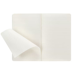 Perfect lightweight journal for day-to-day use with cardboard cover and visible stitching. Flexible cardboard cover with rounded corners and visible stitching. Ruled format, ivory-colored 70 g/m² acid-free paper. Last 16 sheets are detachable. Flap pocket on inside back cover for collecting loose notes. 80 pages (40 sheets). Journals come packaged with a Moleskine retail paper band. This item is also FSC®-certified (FSC® C175379) ensuring it comes from responsibly managed forests that provide environmental, social, and economic benefits. PVC Free Product