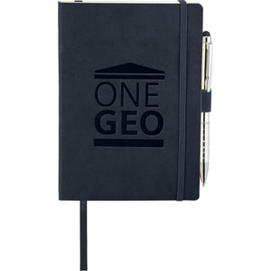 Set includes Revello Soft Bound Journal Book with Preston Dual Ballpoint Stylus with built in elastic closure. Ribbon page marker.Pen loop. Document pocket on interior back cover. Includes 80 sheets of cream lined paper.
