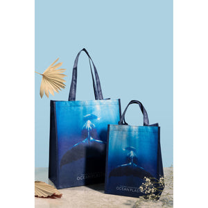 An eye-catching lunch bag, made from 100% Ocean Plastic® and featuring brilliant ocean photography. This reusable tote carries your lunch so you can carry on being more sustainable with every use. Out of the Ocean® products are made from 100% Ocean Plastic®. This bag removes the equivalent of 3 plastic water bottles from our oceans and waterways. To care for your bag, hand wash in warm water with a mild detergent or soap. Do not machine wash.