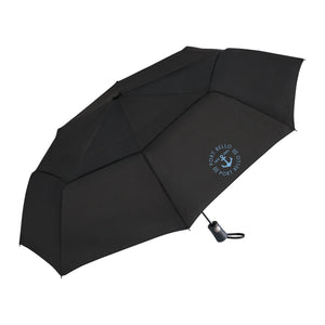 Stay dry under this eco-friendly 46" Auto Open Umbrella! This umbrella is easy to use and travel with. Made with metal and fiberglass this sturdy umbrella also features an ABS handle for extra comfort. Comes with an RPET sleeve packed in an FSC pouch. Wind rated up to 25mph.