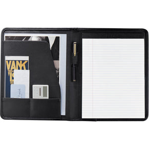Interior organizer with document folder. Front slot pocket. Pen loop. Includes 8.5" x 11" writing pad.